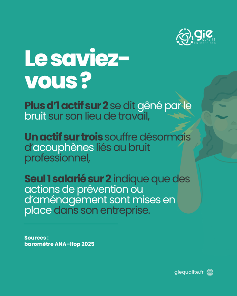 En tant qu’acteur engagé dans la prévention des risques professionnels, le GIE Qualité Entreprises accompagne les entreprises dans l’évaluation du risque bruit, la mise en place d’actions préventives et la sensibilisation des équipes.