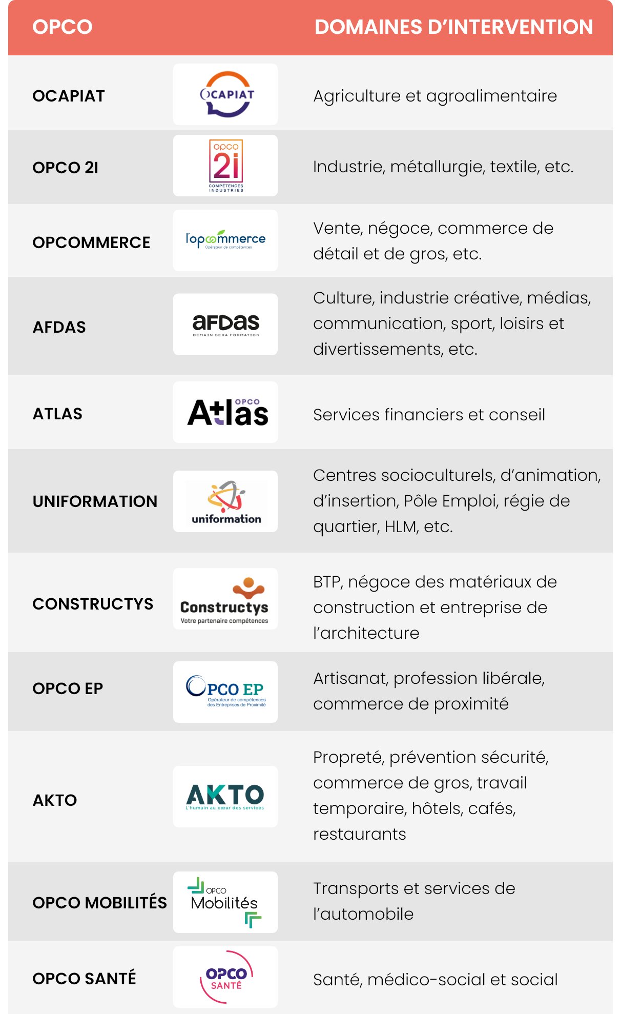 Les OPCO (OPérateurs de COmpétences) accompagnent les entreprises de -50 salariés dans le financement de leurs formations professionnelles. Il en existe 11, chacun spécialisé dans un domaine d’intervention lié à des critères de métier, de compétences, d’enjeux et de mobilité.