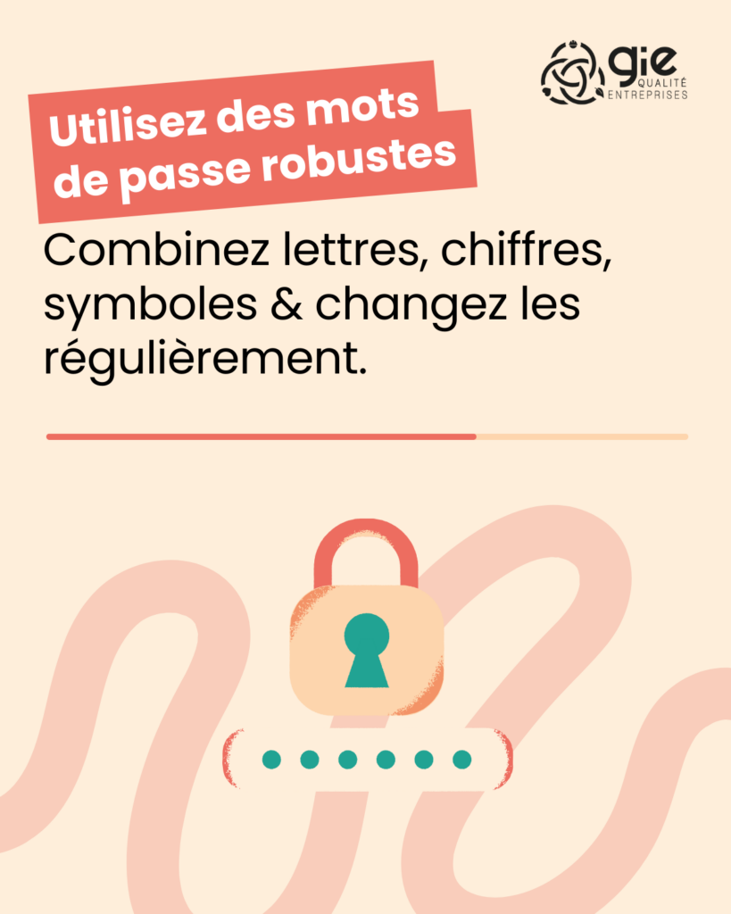 Combinez lettres majuscules et minuscules, chiffres et caractères spéciaux, et changez-les régulièrement. Évitez les mots de passe identiques sur plusieurs outils.