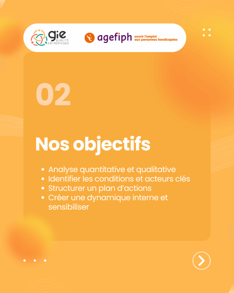- Réaliser une analyse complète de notre situation et des perspectives liées à l’emploi des travailleurs handicapés.
